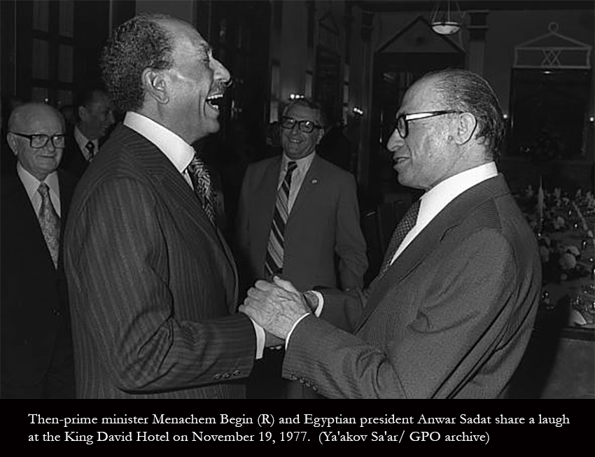 Saya ngutip teks Hani Nasira di Arab News, On November 19, 1977, “Israeli Prime Minister Menachem Begin and Egyptian President Anwar Sadat met in Jerusalem, where Sadat, the first Arab head of state to visit Israel, was welcomed by a handshake with Begin. This historic meeting began a series of peace negotiations that would lead to the Camp David Accords the following year and ultimately a formal peace treaty between Egypt and Israel, for which both leaders were jointly awarded the Nobel Peace Prize.”